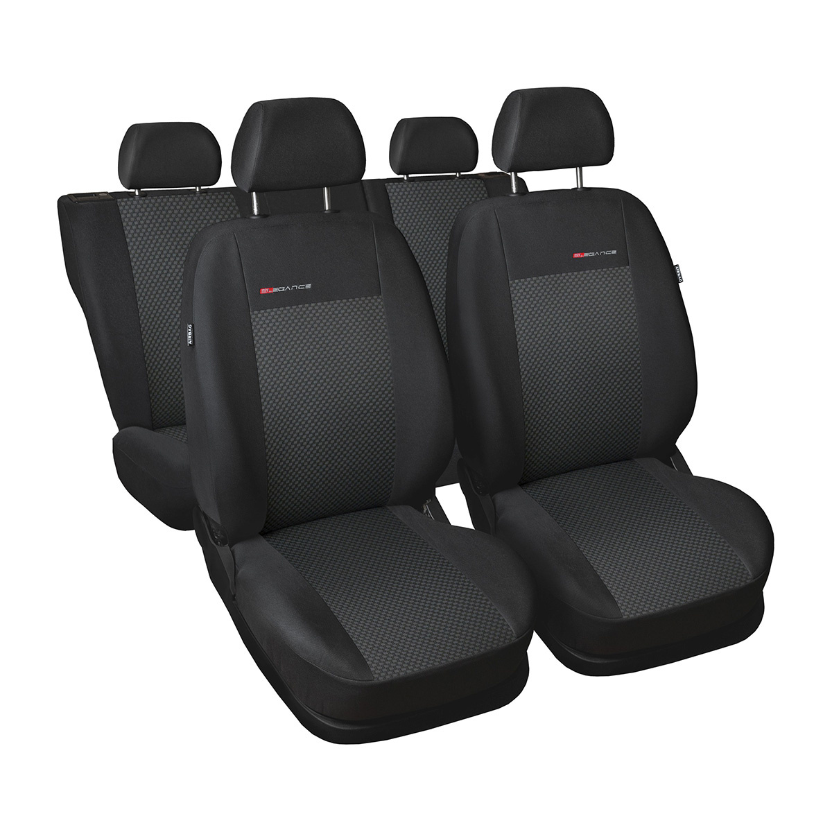 - Takket være brugen af AIRBAG-certificerede sømme forstyrrer betrækkene ikke airbaggene og passer til både sæder med sideairbags og standardsæder (uden airbags).
