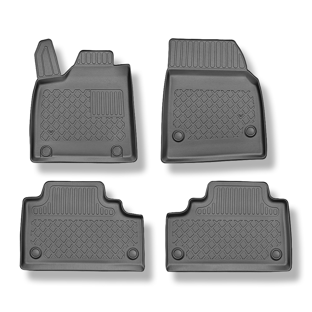 - Den perfekte pasform til bilens gulv og fastgørelsessystemet, afhængigt af bilmodellen, forhindrer måtterne i at glide under kørslen. Måtterne er fremstillet efter de højeste kvalitetsstandarder, og de materialer, der bruges i produktionen, er sikre for helbredet og genanvendelige. Bilmåtterne er vandtætte og nemme at holde rene (de kan rengøres under rindende vand, også med en højtryksrenser).